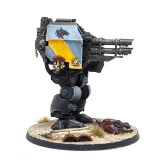 Mortally wounded during the Assault on the Shardspire, Skorri was recovered by his brothers and interred within a Deathwatch Ballistus Dreadnought chassis — a rare honour among the Space Wolves, who typically favour melee-focused Dreadnoughts. The ship's Techpriests saw in him a perfect match for the Ballistus’ long-range firepower and battlefield control.